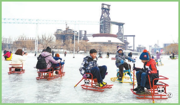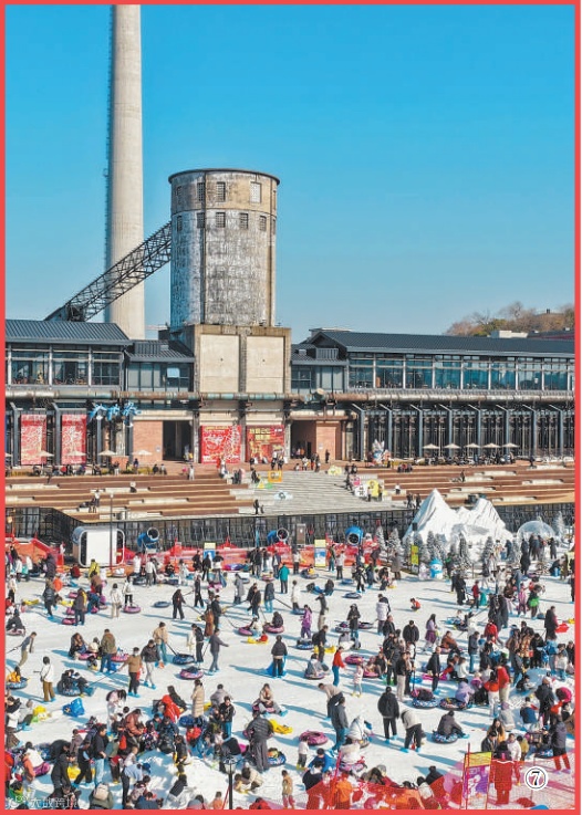浙江省杭州市將杭鋼半山鋼鐵基地融合運(yùn)河文化打造大運(yùn)河杭鋼公園。圖為市民游客在體驗(yàn)冰雪嘉年華。李盛韜 攝/人民視覺)