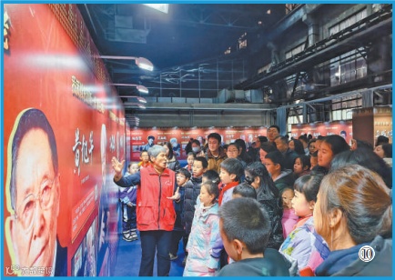 遼寧省沈陽市中國(沈陽)工業(yè)博物館,志愿者在為參觀學(xué)生及市民游客講解科學(xué)家生平和科技知識(shí)。該博物館由沈陽鑄造廠翻砂車間改造而來。王榮巍 攝/人民視覺)