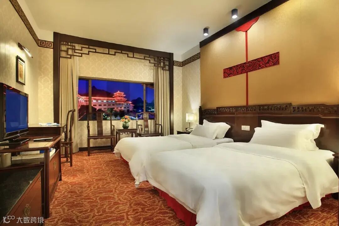坐擁桂林核心景區(qū): 飯店直接坐落于桂林市中心桂湖之畔,與榕湖、杉湖共同構(gòu)成“兩江四湖”環(huán)城水系的核心部分。推窗即是景,出門便入畫。