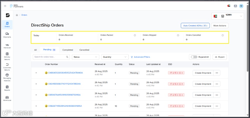 已發(fā)貨:已移交Noon物流的訂單 -