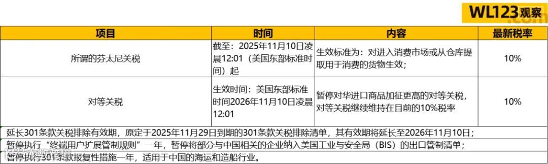 3.延長301條款關(guān)稅排除有效期,原定于2025年11月29日到期的301條款關(guān)稅排除清單,其有效期將延長至2026年11月10日;