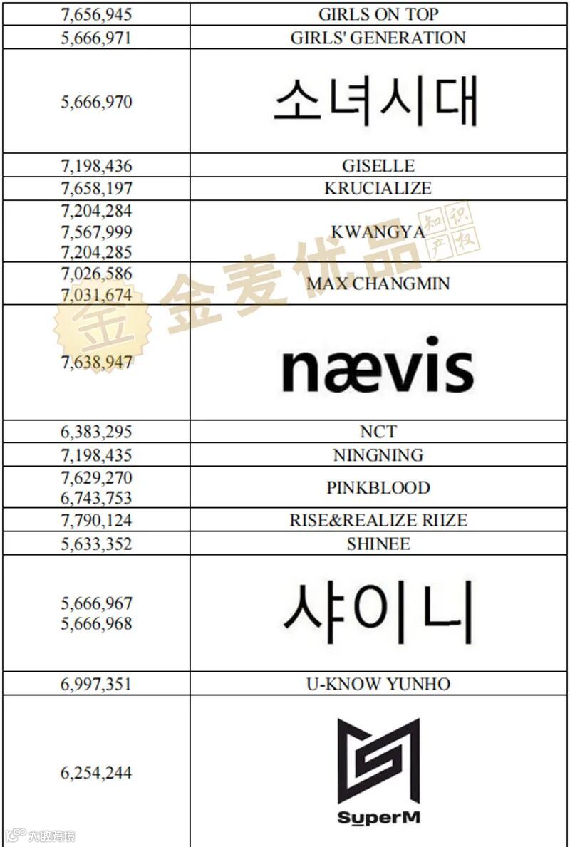 導(dǎo)讀:SM Entertainment co., Ltd.在美國(guó)共注冊(cè)了SM 以及 aespa等藝人的多個(gè)商標(biāo),僅本案就涉及近三十個(gè)商標(biāo),覆蓋音樂(lè)唱片、服裝、配飾、家電、玩具等眾多類目,