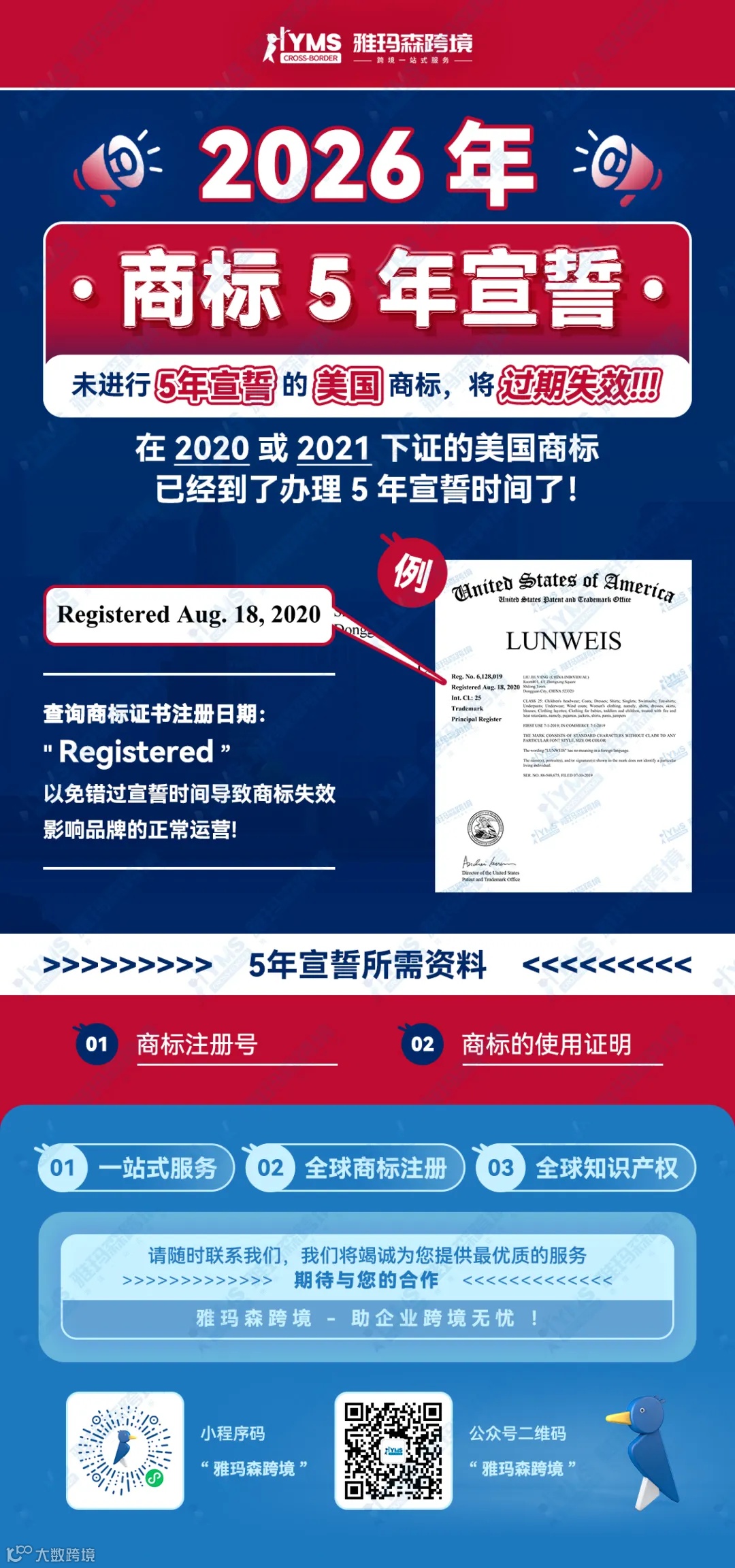2026美標宣誓已經(jīng)進入倒計時階段,如果你的商標是2020-2021年注冊的,現(xiàn)在就必須開始排查規(guī)劃,建議咨詢專業(yè)服務商獲取專屬方案。提前準備,才能穩(wěn)穩(wěn)保住你的品牌資產(chǎn)和平臺權(quán)益。