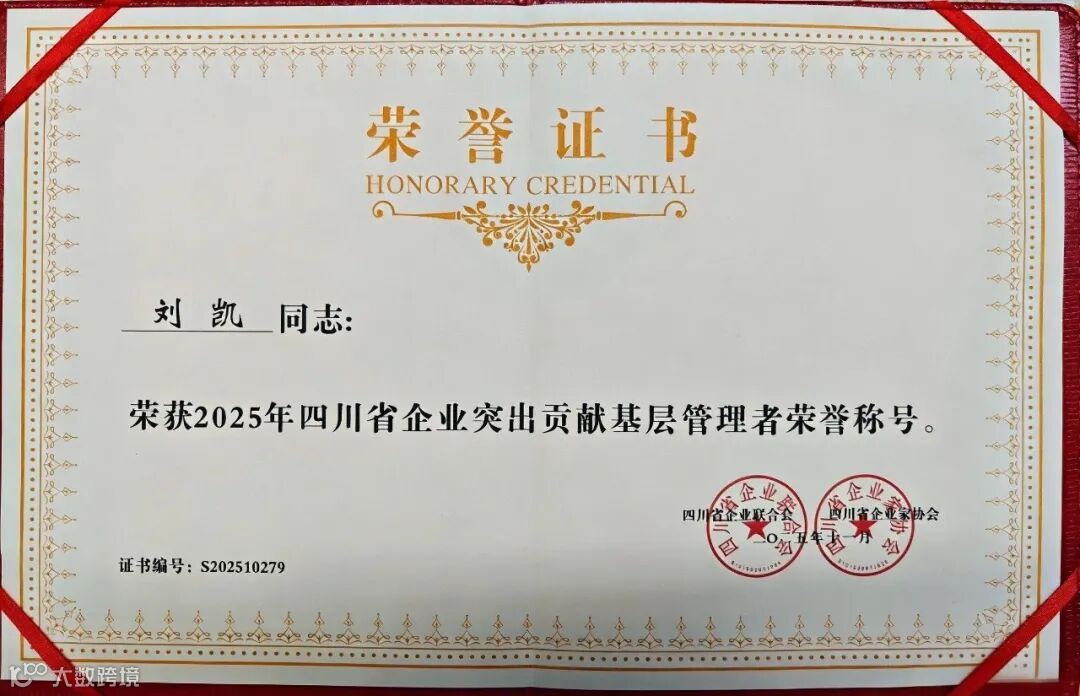 他以出色的工作表現(xiàn),先后獲得“國新聯(lián)程集團2023年度優(yōu)秀員工”“國新聯(lián)程運銷公司2024年度優(yōu)秀共產(chǎn)黨員”等榮譽稱號,近日,在四川省2025年度企業(yè)突出貢獻基層管理者評比活動中獲得“突出貢獻基層管理者”稱號。