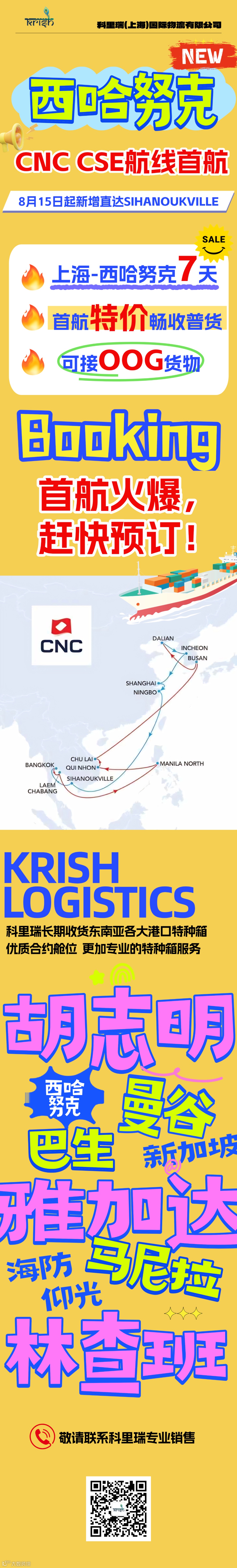 導(dǎo)讀:CNC CES航線新增西哈努克港SIHANOUKVILLE,有普貨、特種箱貨物出口歡迎聯(lián)系科里瑞!
