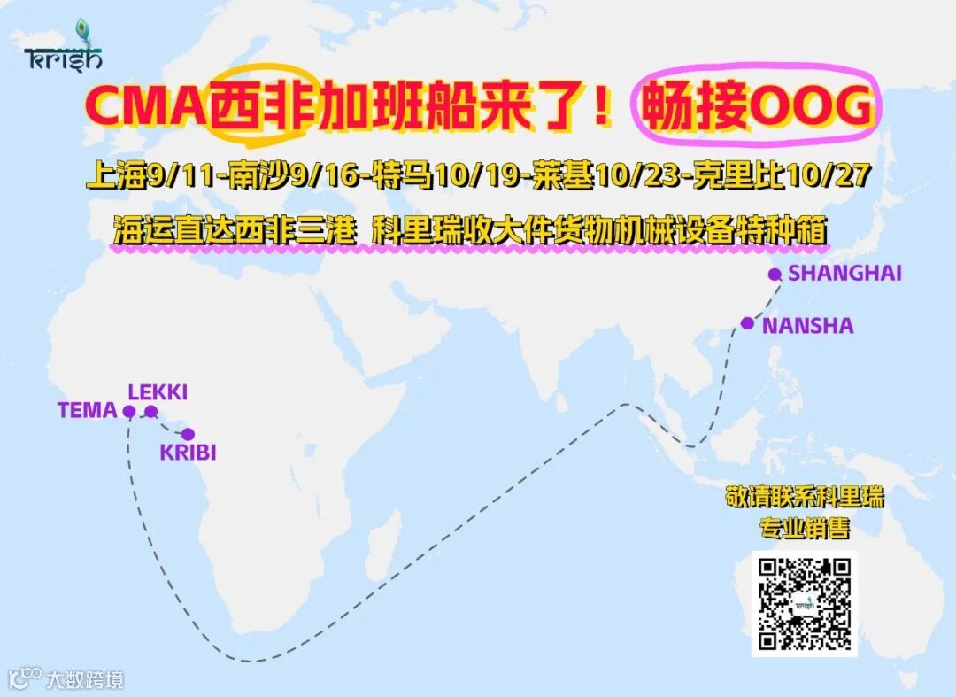 CMA9月加班船,掛靠西非3港!特種箱即刻開啟預訂! 科里瑞