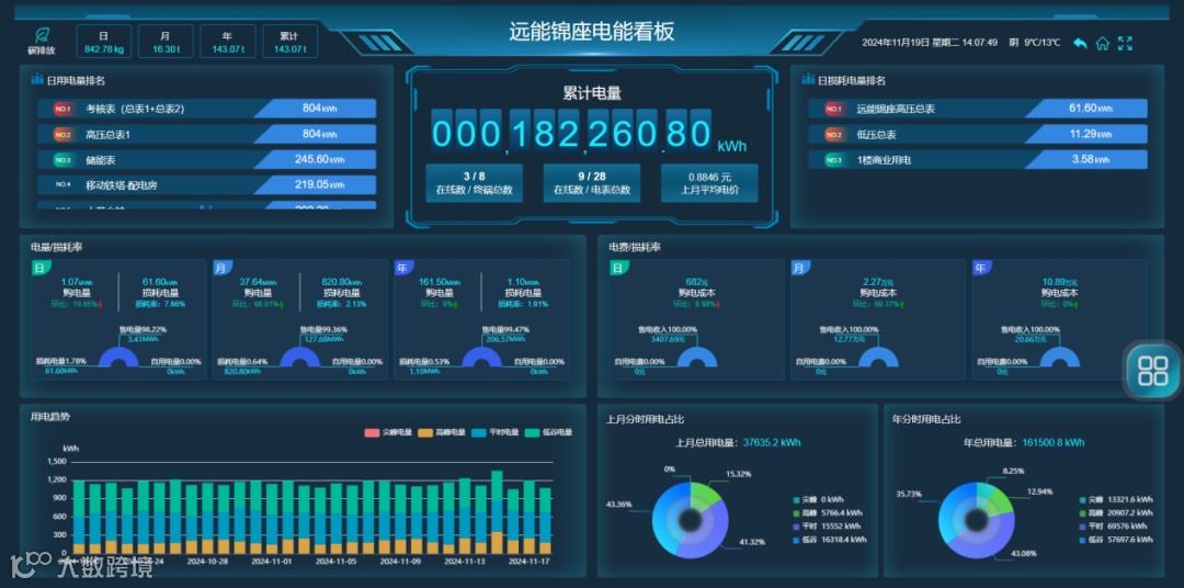 沒有對項目每天運(yùn)行數(shù)據(jù)進(jìn)行監(jiān)測和展示,供電量(高壓總表)、售電量(代收代繳電量)、繳費(fèi)數(shù)據(jù)、欠費(fèi)數(shù)據(jù)、負(fù)荷數(shù)據(jù)、損耗數(shù)據(jù)等都沒有匯總統(tǒng)計、沒有詳細(xì)的報表,無法對整體用電情況做全盤掌握。