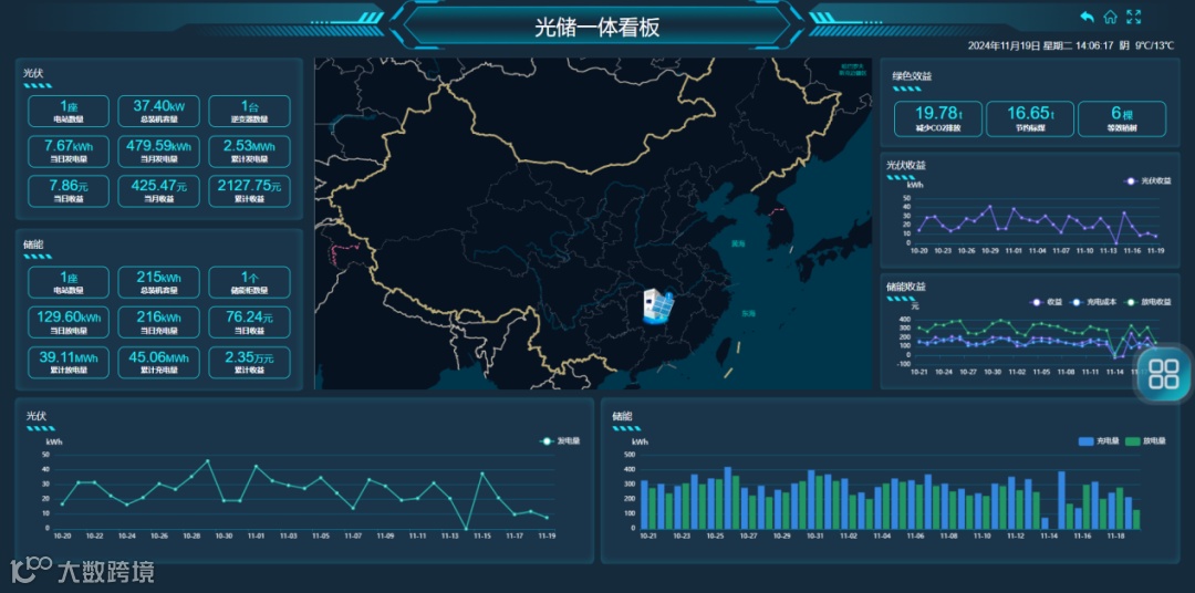 2)光儲一體看板,一圖展示項目光伏和儲能的收益情況;