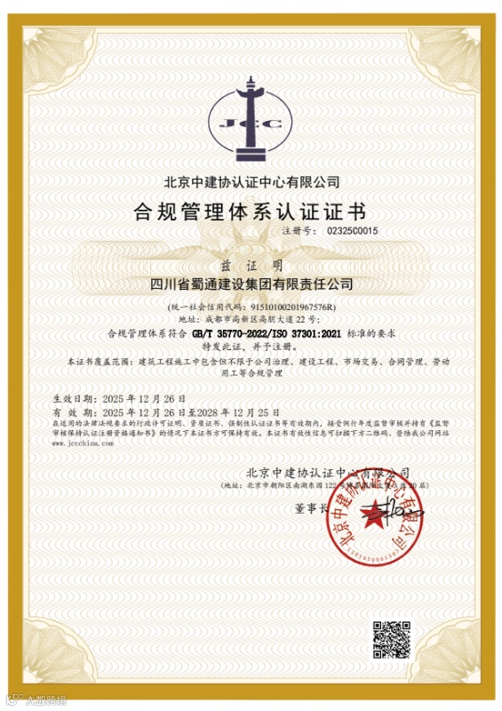 權威認證!公司成功取得合規(guī)管理體系認證證書 四川資源集團-蜀通建設集團