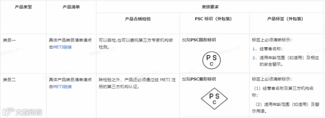 圓形PSC需提供符合<<消費(fèi)生活用產(chǎn)品安全法>>要求的檢驗(yàn)記錄;菱形PSC則需同時(shí)提供檢驗(yàn)記錄和由已注冊的合格評定機(jī)構(gòu)出具的合格證書