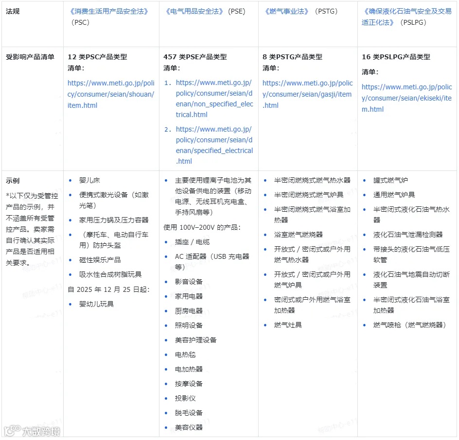 根據(jù)<<產(chǎn)品安全法>>(PS法),受管控產(chǎn)品被分為四類,每類均有特定要求: