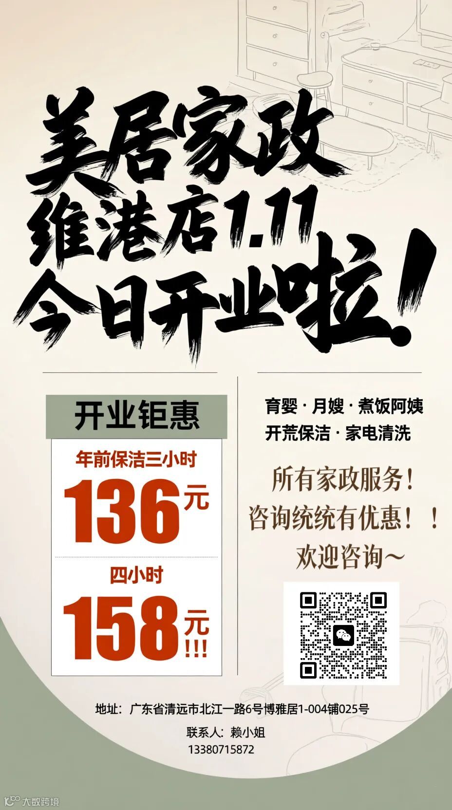 維港家政新選擇!美居家政維港店 1.11 開業(yè),年前保潔低至 136 元! 清遠唐達數(shù)字科技