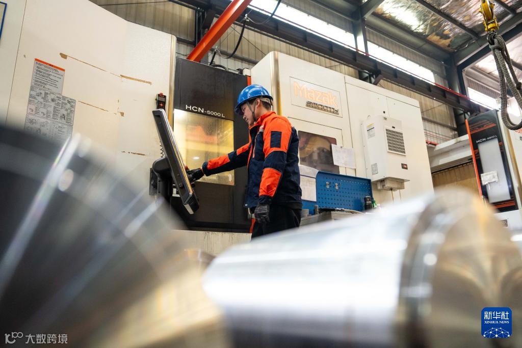 1月14日,在位于常德高新區(qū)的湖南佳鴻機械股份有限公司,工人在生產風力發(fā)電機滑動軸承。