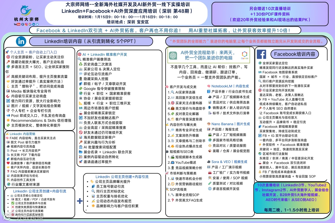 繼首日聚焦 LinkedIn 后,1月16日將全面啟動“社媒 + AI”整合應(yīng)用,圍繞流量獲取、視覺信任、成交轉(zhuǎn)化三大維度打造高效外貿(mào)系統(tǒng)。