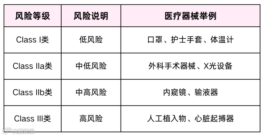 醫(yī)療器械按風(fēng)險(xiǎn)等級(jí)劃分為四類:Class I、Class IIa、Class IIb 和 Class III。