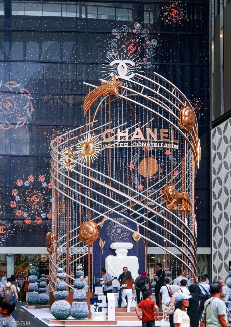 正門口有亞洲唯一的CHANEL Winter Constellation冬季圣誕裝飾,優(yōu)雅精致,法式浪漫美學(xué)盡顯,為圣誕添高級感。