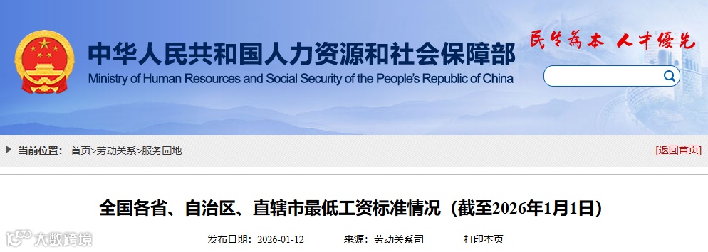 近日,人社部官網公布全國各省、自治區(qū)、直轄市最低工資標準情況(截至2026年1月1日)。