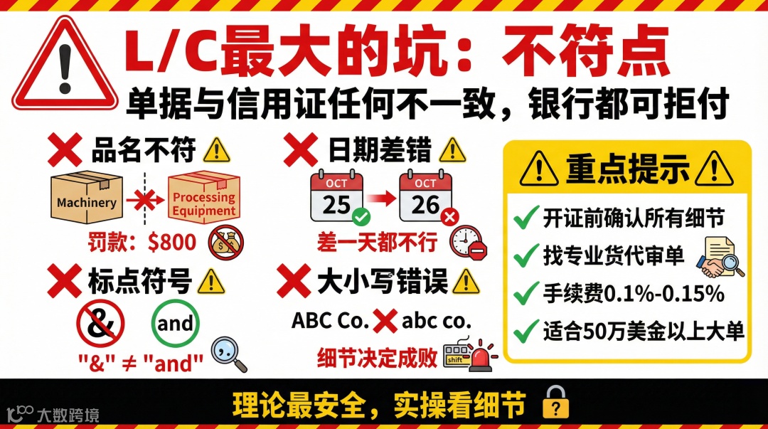 信用證是銀行信用擔(dān)保,理論上最安全。但很多人不知道,L/C最大的坑不是安全性,而是"不符點(diǎn)"。