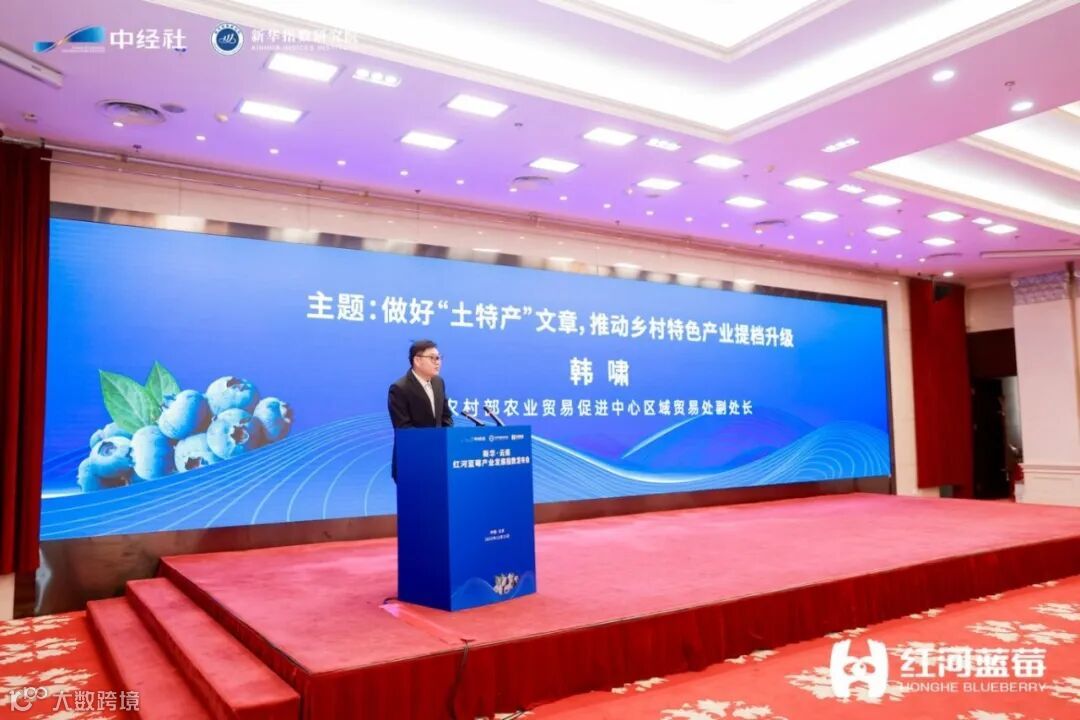 紅河州農(nóng)業(yè)農(nóng)村局副局長(zhǎng)馬立崗化身紅河藍(lán)莓的推介官,全面闡述了紅河藍(lán)莓的產(chǎn)業(yè)優(yōu)勢(shì)。