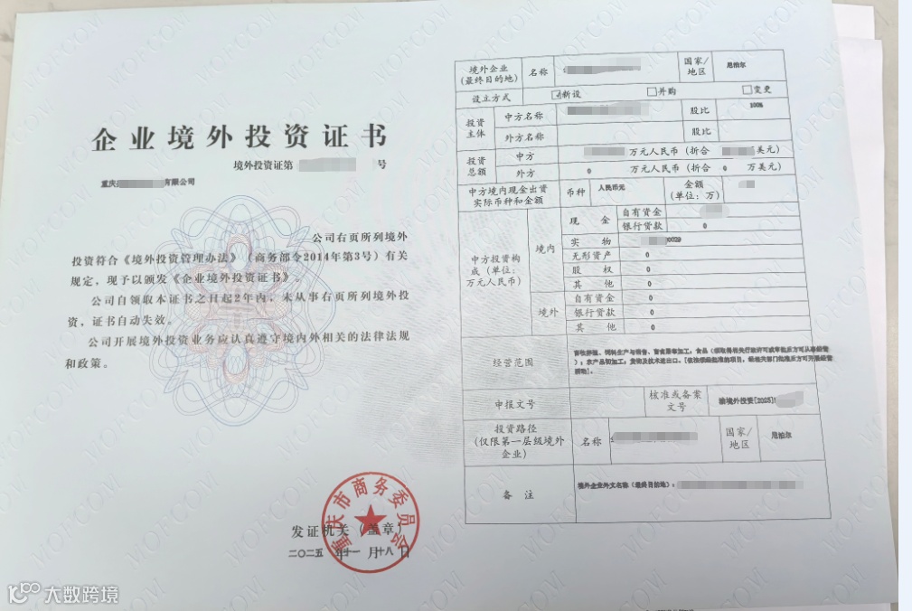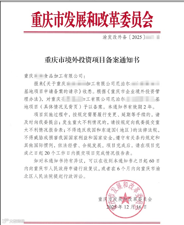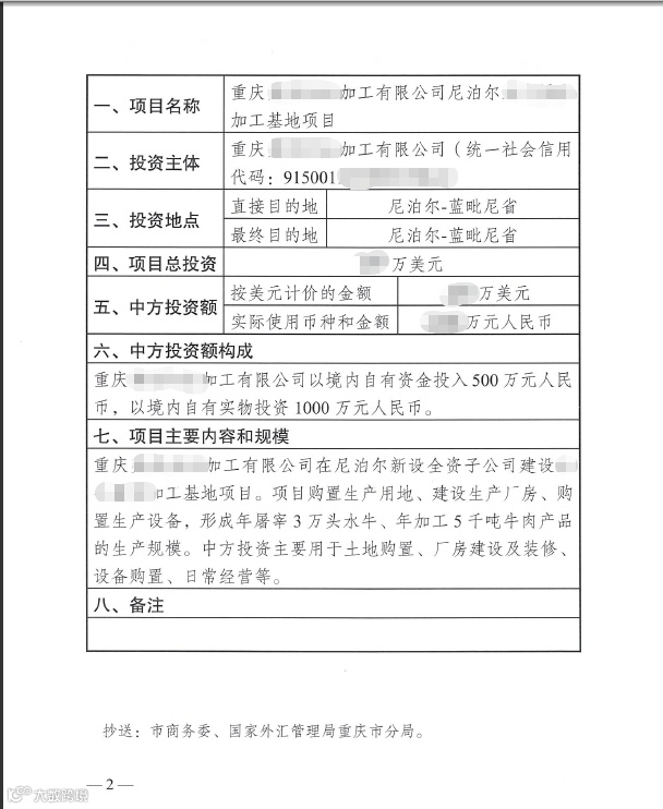 重慶長協(xié)公司企業(yè)服務(wù)成果展示—企業(yè)境外投資備案ODI證書(重慶首家企業(yè)前往尼泊爾投資)