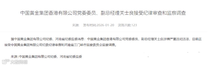 據中國黃金集團有限公司紀委、河南省紀委監(jiān)委消息:中國黃金集團