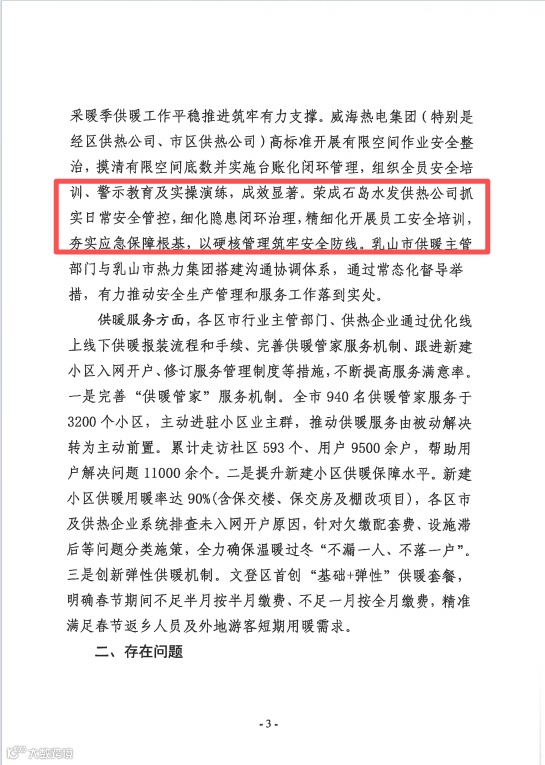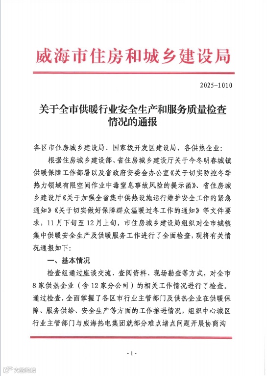 近日,威海市住房和城鄉(xiāng)建設(shè)局通報2025年全市供熱行業(yè)安全生產(chǎn)測評結(jié)果,榮成石島供熱公司憑借優(yōu)異表現(xiàn)獲通報表揚。