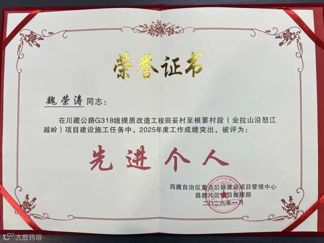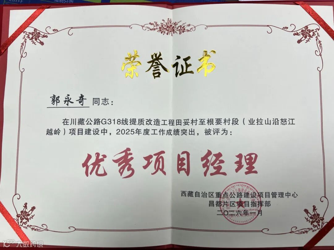 西藏自治區(qū)重點(diǎn)公路建設(shè)項(xiàng)目管理中心昌都片區(qū)項(xiàng)目指揮部印發(fā)《關(guān)于表彰2025年度川藏公路G318線提質(zhì)改造工程田妥村至根要村段(業(yè)拉山沿怒江越嶺)及根要村至瓦達(dá)村(冷曲河)段項(xiàng)目先進(jìn)單位及個(gè)人的通報(bào)》(昌指字〔2026〕8號(hào)),對年度表現(xiàn)突出的集體與個(gè)人予以通報(bào)表彰。其中,西藏G318線田根段公路一分部憑借在施工進(jìn)度、質(zhì)量安全、環(huán)水保管理、合同履約及綜合管理等多方面的優(yōu)異表現(xiàn),成功斬獲2025年度“先進(jìn)項(xiàng)目經(jīng)理部”榮譽(yù)稱號(hào)。同時(shí),項(xiàng)目履約項(xiàng)目經(jīng)理郭永奇獲評(píng)“優(yōu)秀項(xiàng)目經(jīng)理”,項(xiàng)目魏榮濤、孫亞威獲評(píng)“先進(jìn)個(gè)人”。