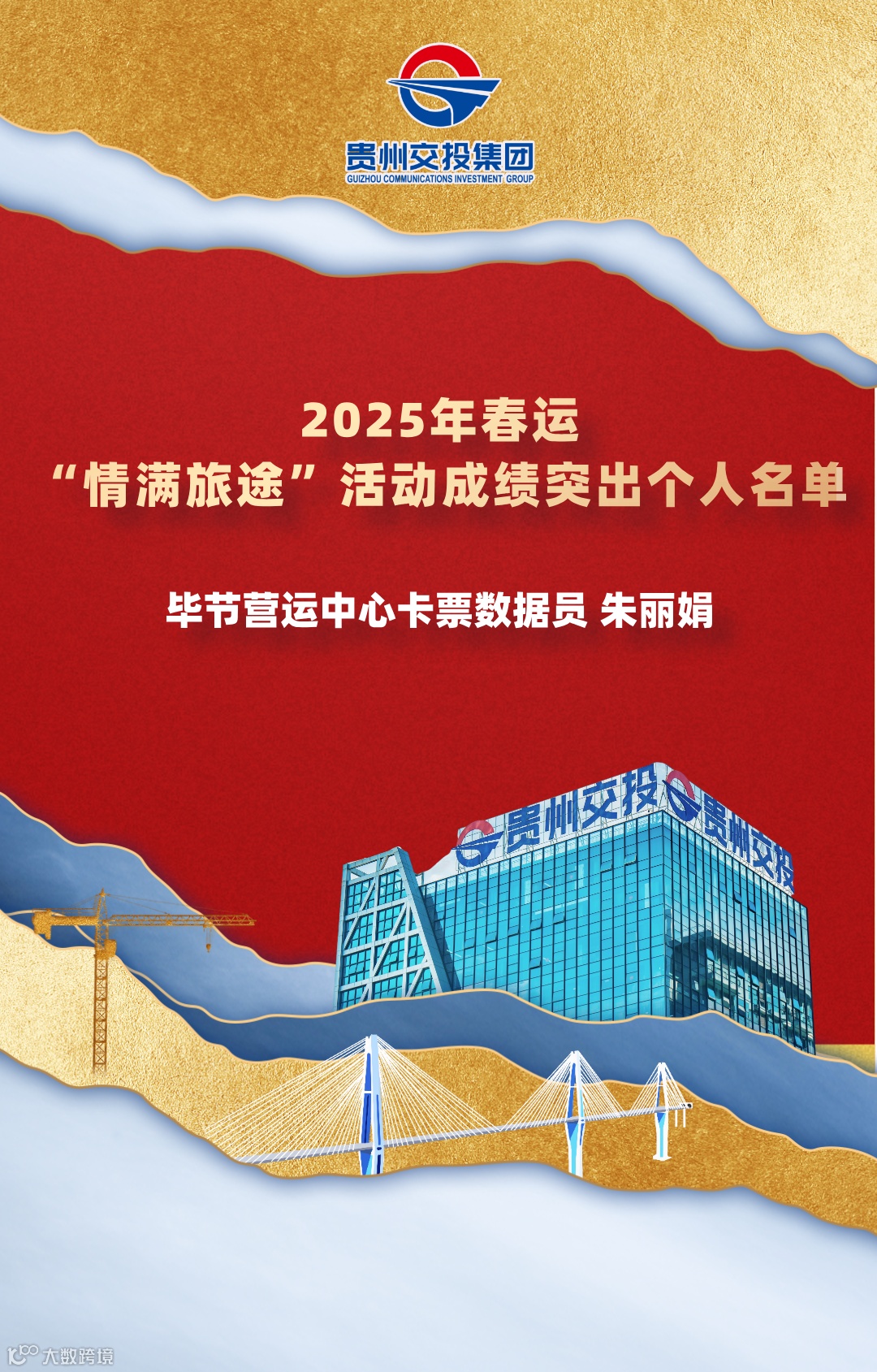 近日,交通運輸部、公安部、應(yīng)急管理部、中華全國總工會、共青團中央聯(lián)合發(fā)文,對2025年春運服務(wù)保障工作中成績突出的集體和個人予以通報表揚,貴州交投集團畢節(jié)營運中心朱麗娟榮獲2025年春運“情滿旅途”活動成績突出個人。