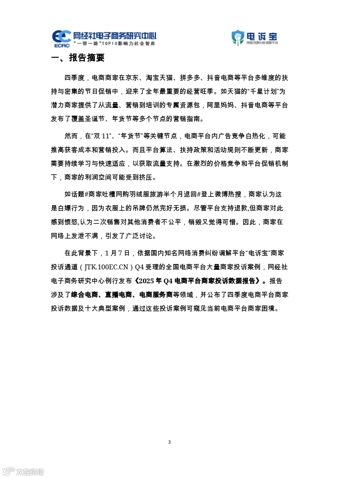 2025Q4電商平臺(tái)商家投訴數(shù)據(jù)報(bào)告