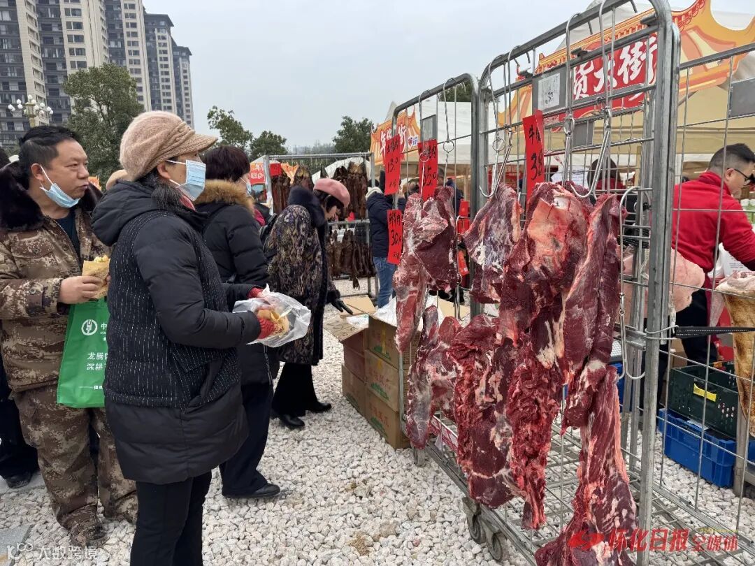 懷商特色年貨區(qū)集中展示了臘魚臘肉、冰糖橙、溆浦鵝、新晃牛肉干、靖州茯苓、芷江甜茶等地道特產(chǎn)。