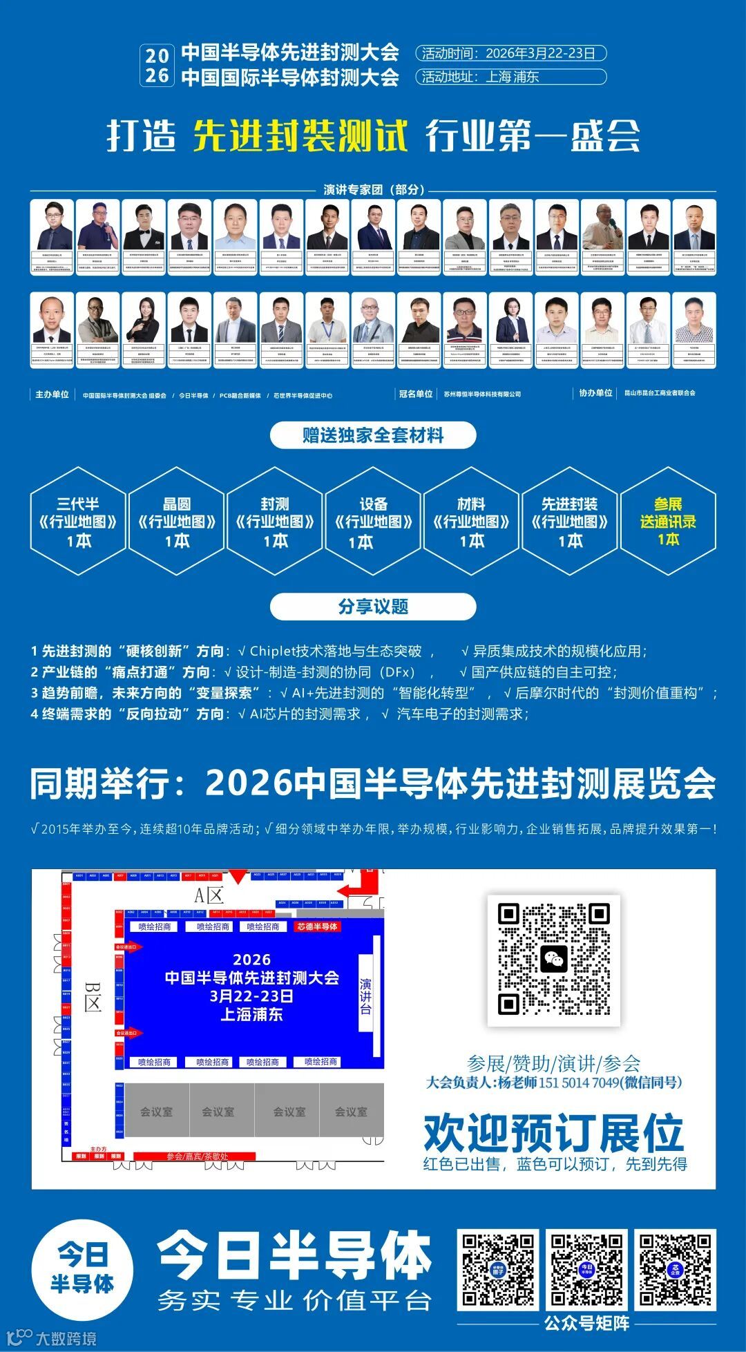 導讀:2026中國半導體先進封測大會,3月在上海浦東舉辦!由今日半導體主辦!打造半導體先進封測行業(yè)第一盛會!聚焦:2.5D/3D 堆疊、扇出型封裝、混合鍵合,晶圓,玻璃TGV........