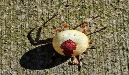 近日,額爾古納國家級自然保護區(qū)管理局工作人員周明、王孝波在西沿江瞭望塔附近發(fā)現(xiàn)一種特殊蜘蛛。該蜘蛛步足呈黃白色且半透明,腹部圓卵形,具紅色火炬狀斑紋,經鑒定為花崗園蛛。