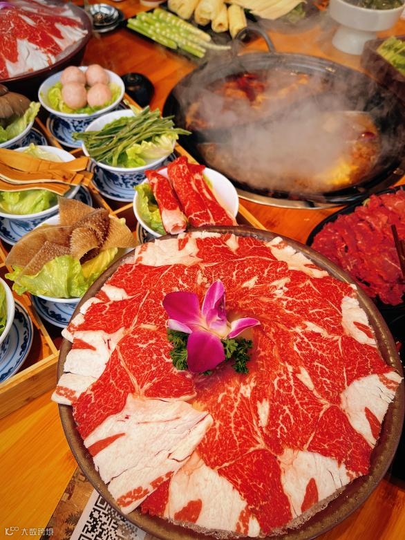 食材皆為自然饋贈:脆毛肚七上八下,爽脆彈牙;嫩肥牛輕涮即卷,滑嫩多汁;手工蝦滑真材實料,顆粒分明,鮮甜回甘;搭配黃喉、菌菇、時蔬,葷素均衡,擺盤精致。