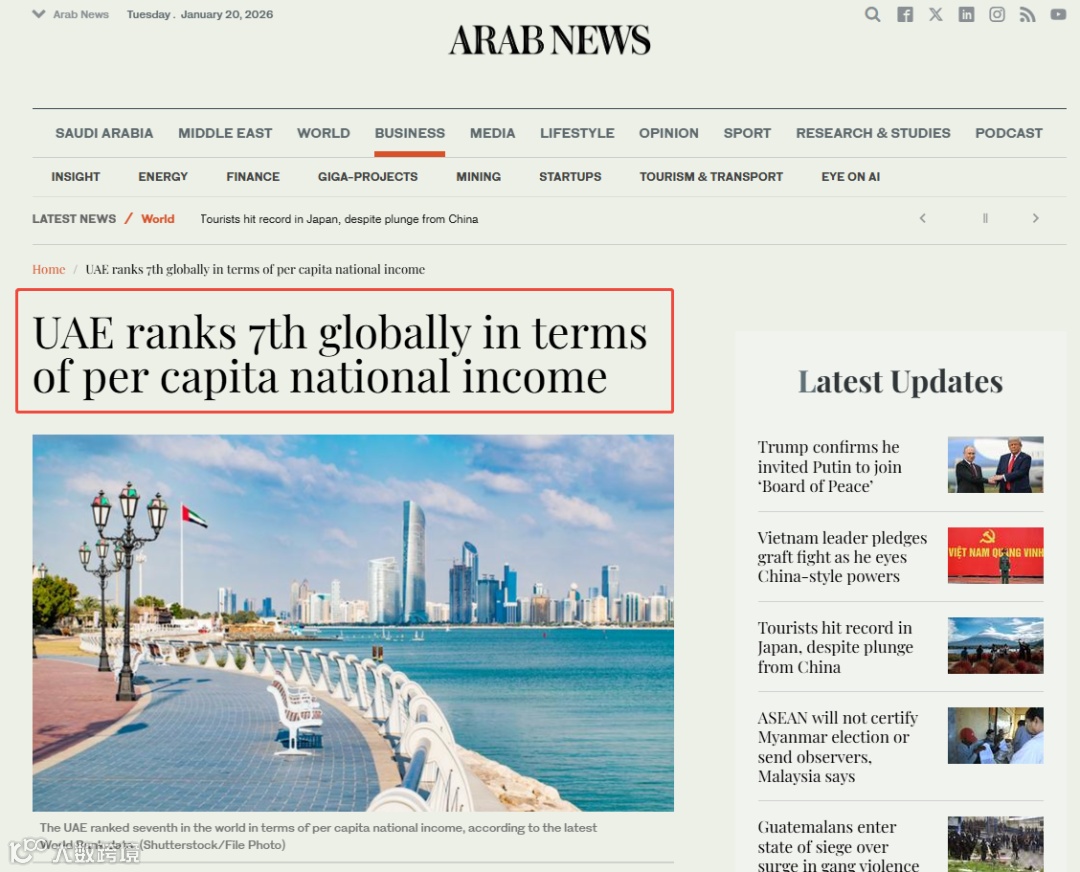 ▲阿聯(lián)酋曾被列為全球人均國民收入排名第七的國家