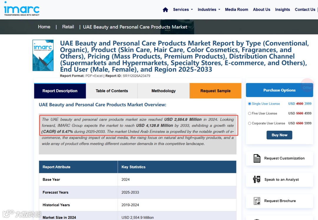 受國際化人口結(jié)構(gòu)影響,阿聯(lián)酋美容個護(hù)市場需求多元化,男性護(hù)理及中性/無性別美妝品類持續(xù)抬升,形成“第二增長曲線”。行業(yè)數(shù)據(jù)顯示,該市場規(guī)模預(yù)計(jì)2033年達(dá)約41.27億美元,增長動能穩(wěn)定。