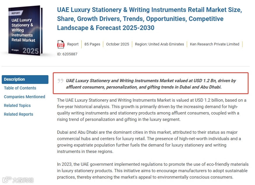 ▲阿聯(lián)酋奢侈文具和書寫工具市場估值為12億美元