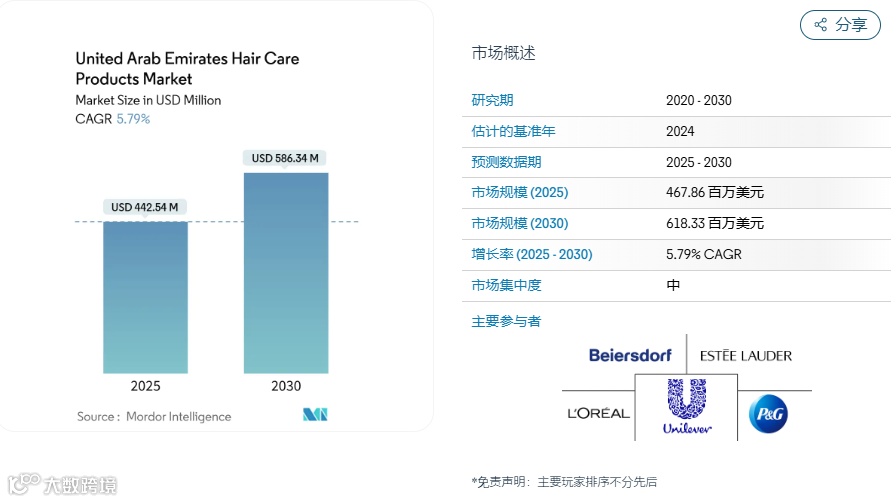▲阿聯(lián)酋護(hù)發(fā)產(chǎn)品市場預(yù)計(jì)到2030年增長至5.8634億美元
