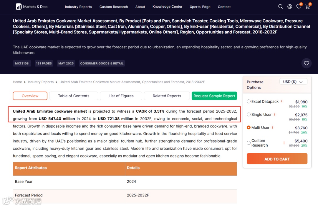 ▲阿聯(lián)酋2032年炊具市場規(guī)模有望達(dá)到約7.2億美元
