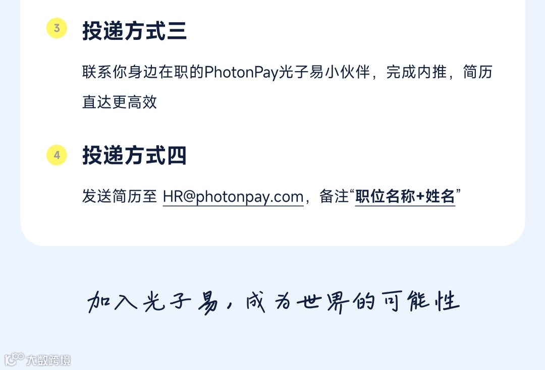 PhotonPay光子易B2B業(yè)務(wù)拓展團(tuán)隊招募進(jìn)行中,期待你的加入!