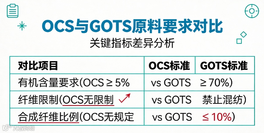 OCS(有機(jī)物含量標(biāo)準(zhǔn)認(rèn)證)主要關(guān)注產(chǎn)品的生產(chǎn)管理與有機(jī)原料追溯,確保產(chǎn)品中含有一定比例的有機(jī)原料,并實(shí)現(xiàn)從源頭到成品的可追溯性。