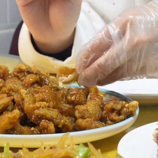 看著相似,實際“迥異”的東北炸肉雙雄,溜肉段跟鍋包肉最明顯的區(qū)別就是咸鮮醬香的口味。他家的掛著厚厚的糊,最外層已經(jīng)炸的脆脆的,特別掛醬汁,裹上現(xiàn)烙的椒鹽餅(3)真的絕配。
