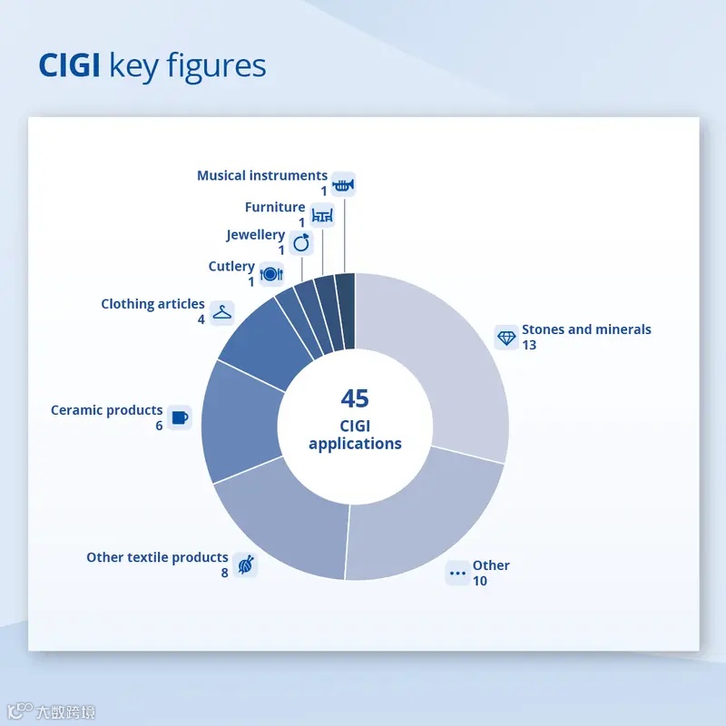 在運營的頭幾周內(nèi),歐盟知識產(chǎn)權(quán)局收到了45份CIGI申請,主要涉及石材和礦物以及紡織品等產(chǎn)品。