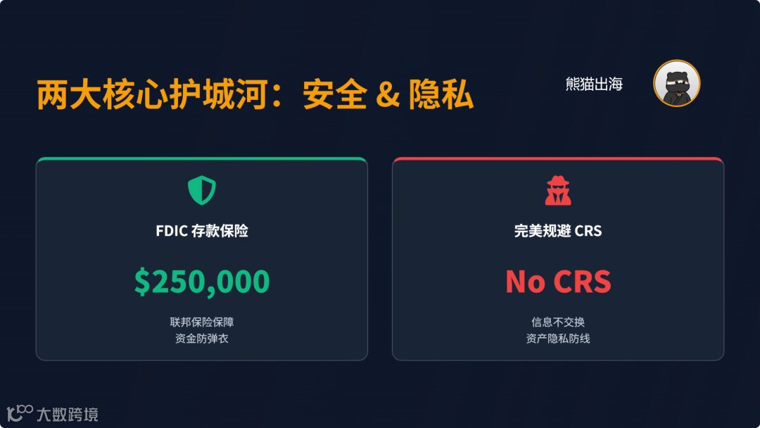 2. 完美規(guī)避 CRS(隱私防線) 美國不參與 CRS(共同申報準則)。你在華美銀行的資產(chǎn)信息,不會被自動交換回中國稅務機關。這對于高凈值人群的資產(chǎn)隔離至關重要。
