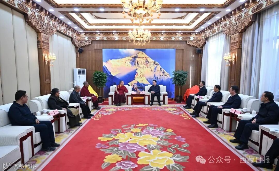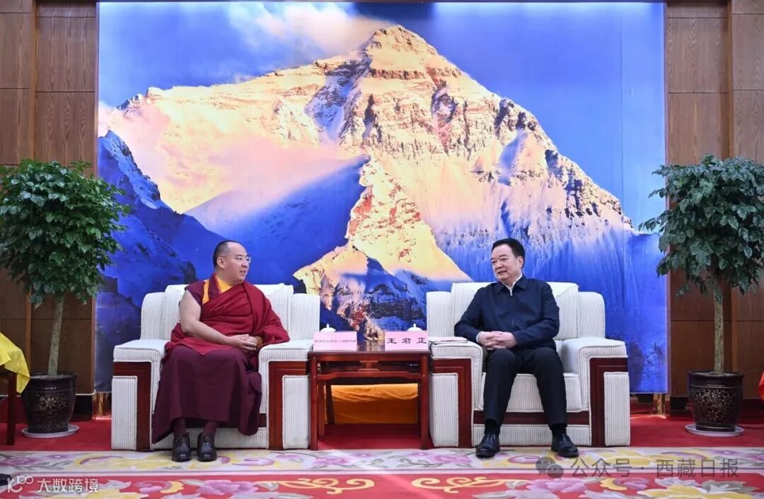 調(diào)研中,王君正會見了班禪額爾德尼·確吉杰布,對其在藏系列佛事活動和社會調(diào)研的順利開展表示祝賀。王君正指出,班禪額爾德尼·確吉杰布回藏履職以來,深入學(xué)習(xí)貫徹習(xí)近平總書記關(guān)于宗教工作、西藏工作的重要指示和新時代黨的治藏方略,廣泛接觸僧俗群眾,大力宣傳馬克思主義宗教觀,在“三個意識”教育中作表率,積極促進(jìn)宗教和順、社會和諧、民族和睦,在推進(jìn)藏傳佛教中國化、鑄牢中華民族共同體意識、引導(dǎo)信教群眾投身社會主義現(xiàn)代化新西藏建設(shè)等方面做了積極有效的工作。希望班禪額爾德尼·確吉杰布堅定政治立場,深刻領(lǐng)悟“兩個確立”的決定性意義,深入學(xué)習(xí)貫徹習(xí)近平總書記重要指示精神,進(jìn)一步增進(jìn)對習(xí)近平總書記和黨中央的政治認(rèn)同、思想認(rèn)同、情感認(rèn)同,始終做到與黨同心同德、同向同行。帶頭愛國愛教,大力弘揚藏傳佛教愛國愛教優(yōu)良傳統(tǒng),堅決維護(hù)祖國統(tǒng)一、民族團(tuán)結(jié),旗幟鮮明反對分裂,大力宣傳藏傳佛教在促進(jìn)各民族交往交流交融中的歷史事實,全力維護(hù)民族團(tuán)結(jié)進(jìn)步、社會和諧穩(wěn)定的良好局面。研習(xí)經(jīng)典,精深造詣,不斷深化宗教學(xué)修,加強各方面知識的學(xué)習(xí)和掌握,對教規(guī)教義作出符合社會發(fā)展、時代進(jìn)步的闡釋,促進(jìn)藏傳佛教與社會主義社會相適應(yīng)。持重善律,涵養(yǎng)情操,自覺遵行“四條標(biāo)準(zhǔn)”,積極踐行社會主義核心價值觀,嚴(yán)明教規(guī)戒律,加強教風(fēng)建設(shè),持續(xù)深化拓展“國家意識、公民意識、法治意識”教育成果,努力把各方面智慧和力量凝聚到社會主義現(xiàn)代化新西藏建設(shè)上來。