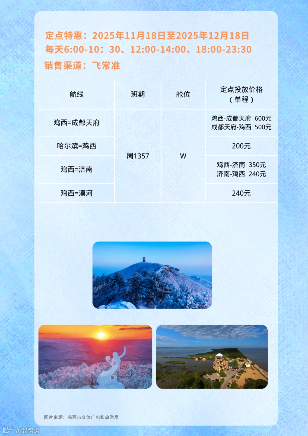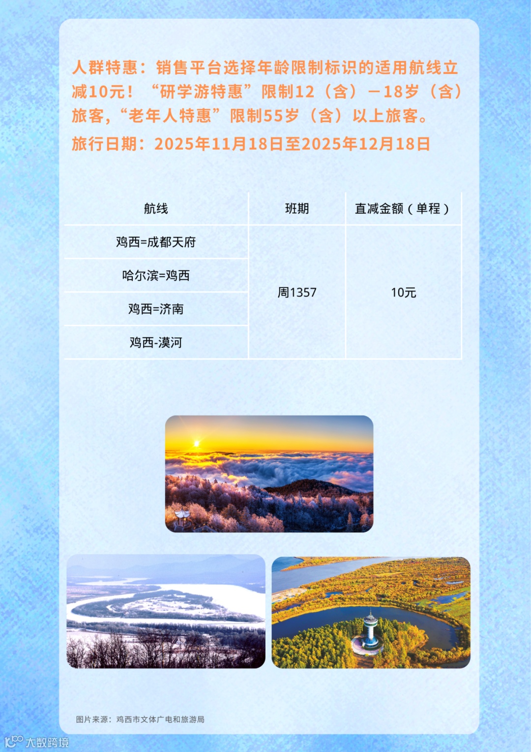 航線特惠 |雞西航線每日定點(diǎn)特惠,學(xué)生老人更有立減優(yōu)惠!