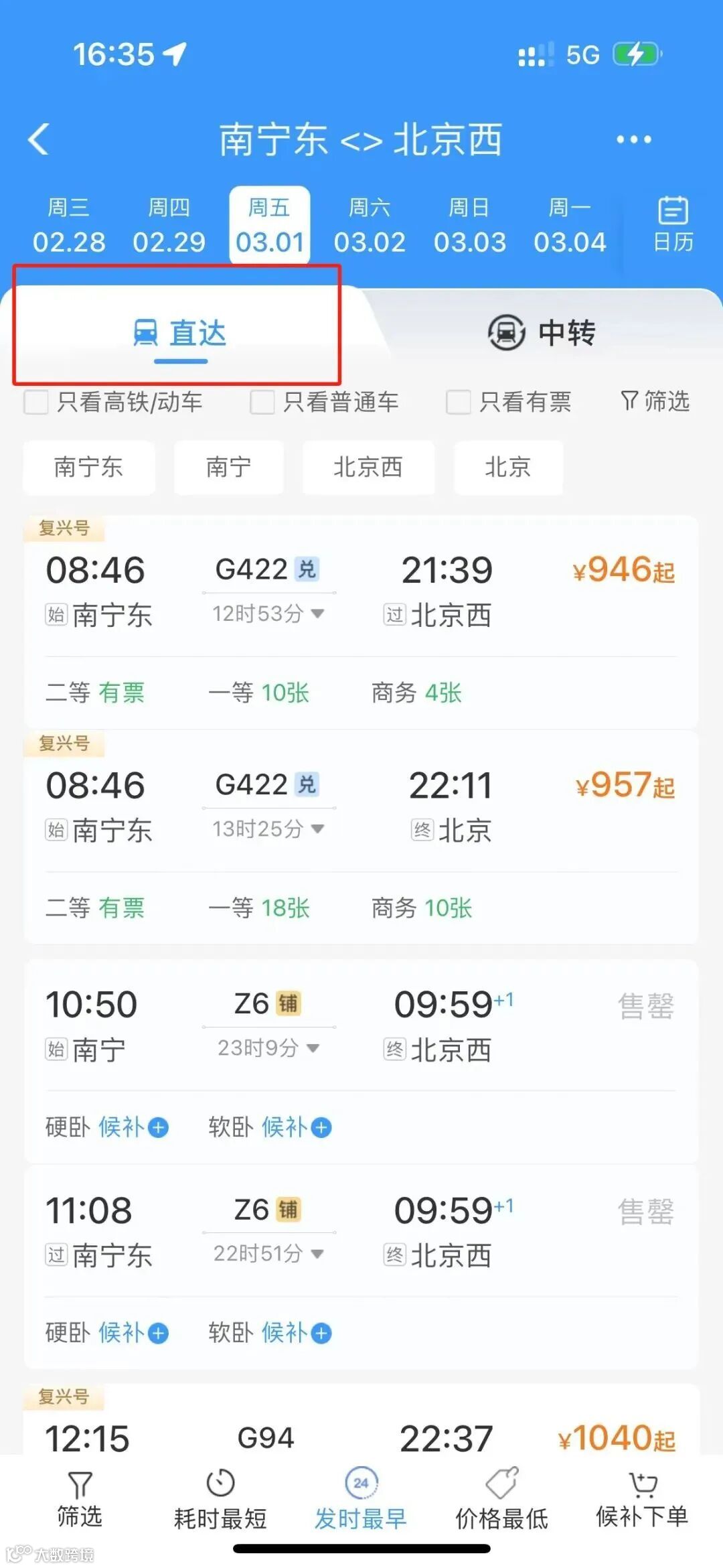 直達車票賣光了怎么辦?