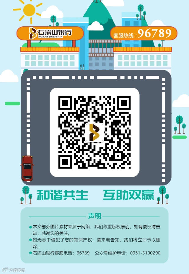 石嘴山銀行 石嘴山銀行官方公眾號(hào)!在這里您可以暢享:賬戶查詢、投資理財(cái)、生活繳費(fèi)等銀行服務(wù)。更多精彩,敬請(qǐng)關(guān)注!