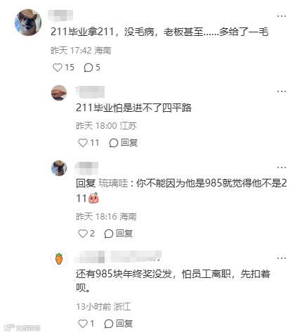 211畢業(yè)是進(jìn)不了四平路的。四平路的標(biāo)配是四平路的碩士。一堆頂級(jí)學(xué)府的高才人堆砌出的價(jià)值在如今僅值211.10元獎(jiǎng)金,這是何等的諷刺。