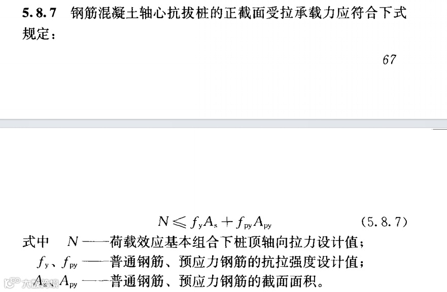 我們再來看看樁受拉承載力特征值受樁身控制時,即有下列公式: