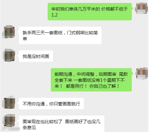 群里有人聊到,有人在接門剛結(jié)構(gòu)設(shè)計(jì)時(shí),報(bào)價(jià)6毛/平,對(duì)方認(rèn)為報(bào)價(jià)太高了,還說現(xiàn)在設(shè)計(jì)資質(zhì)+全專業(yè)施工圖設(shè)計(jì),5塊/平很多設(shè)計(jì)院搶著做,只愿意給到5毛/平(包括前期服務(wù)、施工圖設(shè)計(jì)與圖審)。